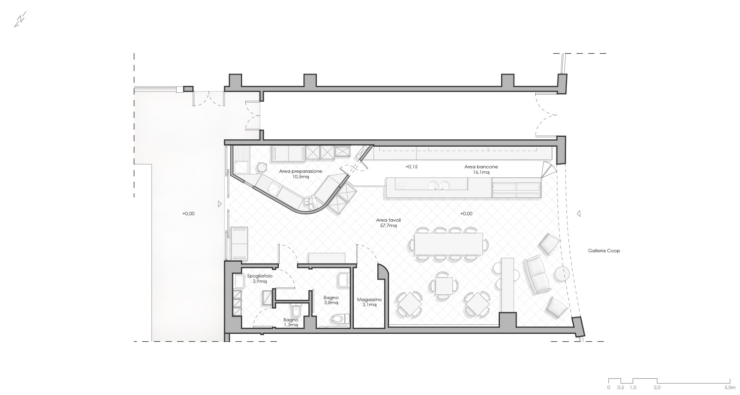 Il progetto ha previsto la riqualificazione di un locale già esistente all'interno di un centro commerciale. Sono stati valorizzati i punti di forza e personalizzati i dettagli creando una forte brand identity.