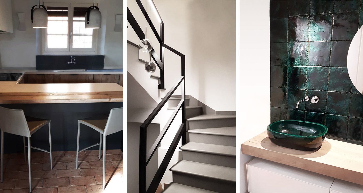 La proposta alla committenza è stata una ristrutturazione che mantenesse il calore di un casale impreziosito dallo studio di dettagli contemporanei.